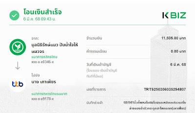 68/025 แมววัดตลิ่งชันป่วยเป็นโรคเชื้อรากินเนื้อหลายตัว(ภราดร) 11,285.00